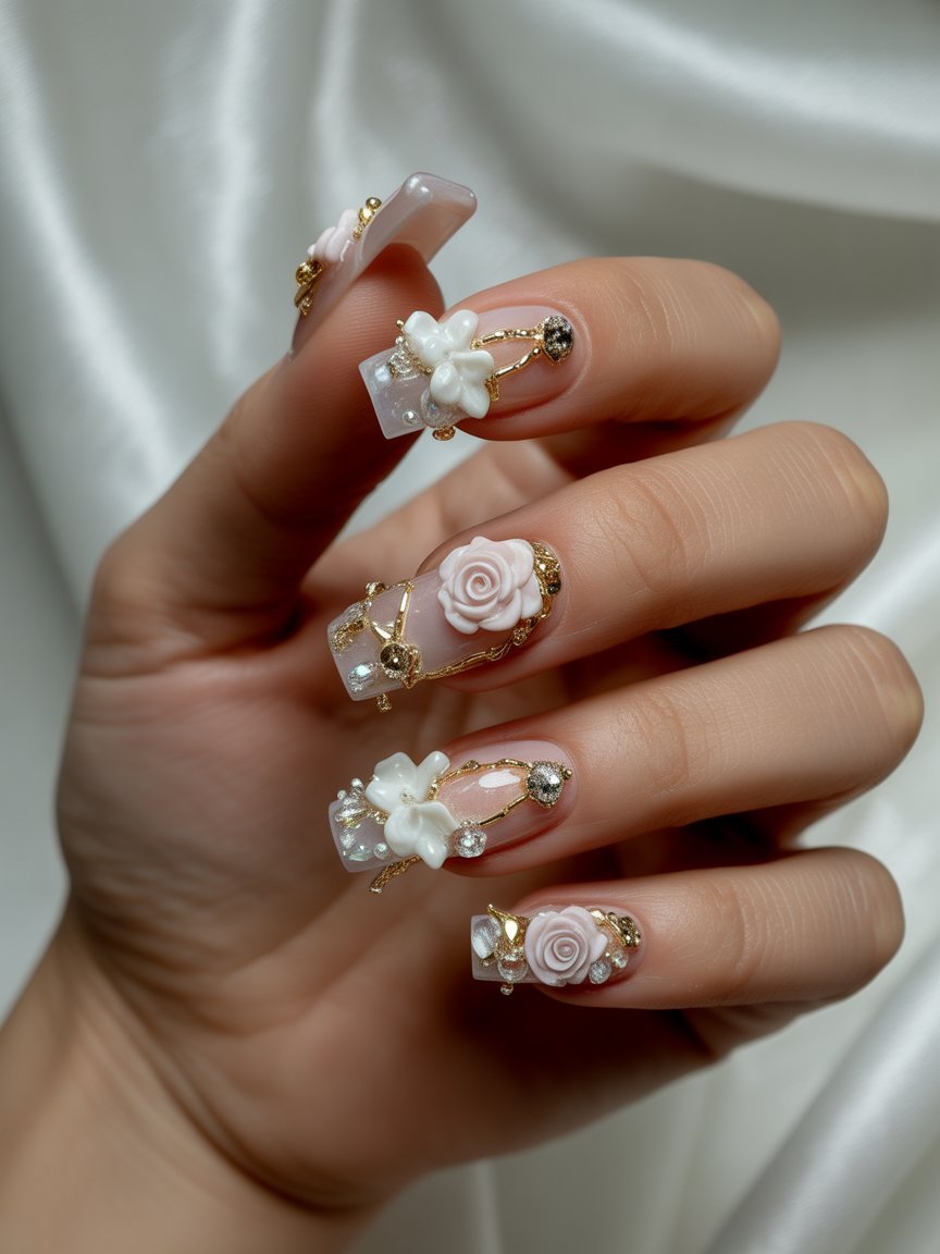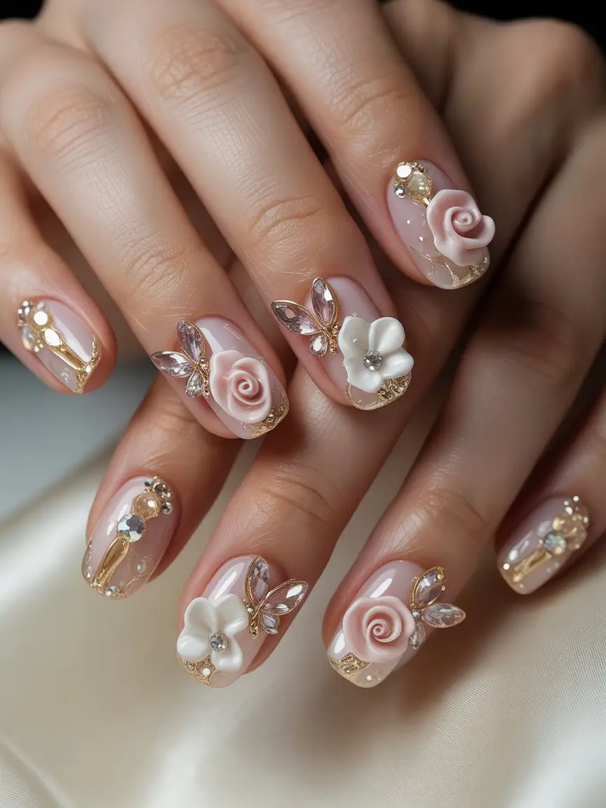 3D nail art is all the rage, adding texture and depth. Some popular elements are:
