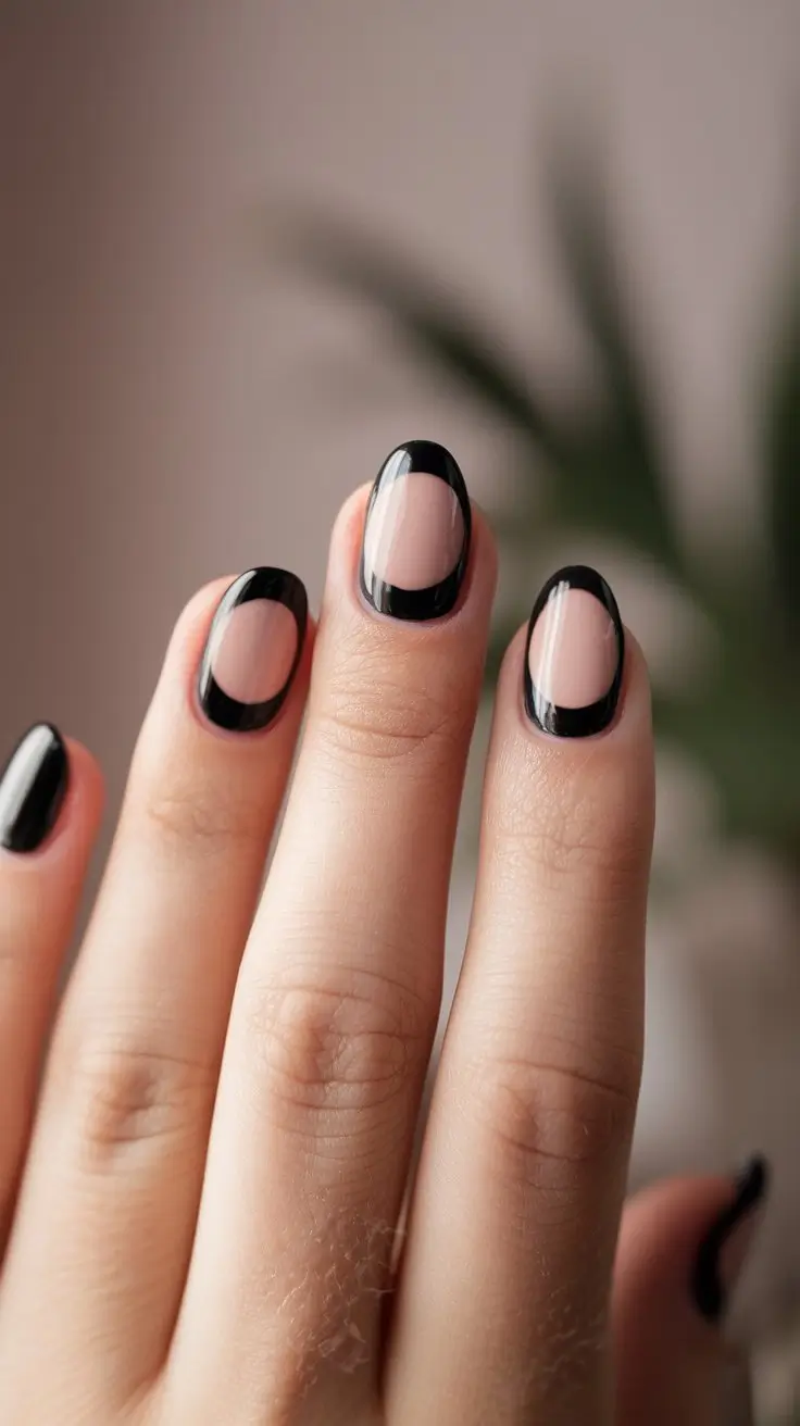 The reverse black French manicure is a modern twist on the classic. It has a black base and a colored or metallic tip instead of the traditional white tip.
