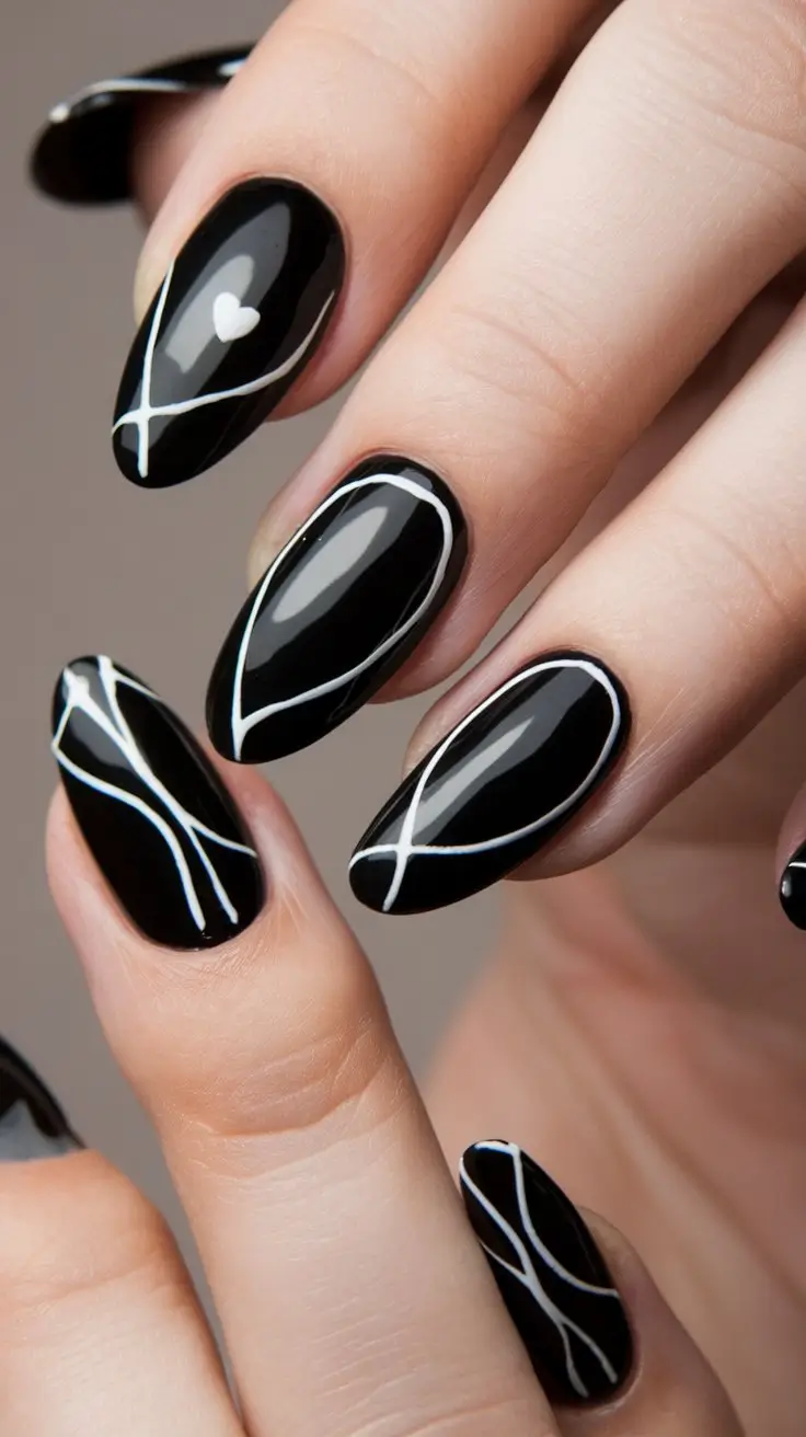 Black marble swirl nails are dramatic and eye-catching. Each nail has a unique pattern, making them a standout choice.