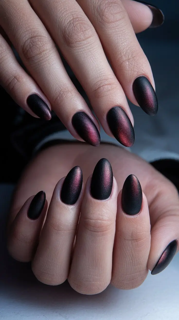 Velvet finish black nails are a luxurious twist on matte finishes. They add a soft, velvety texture that elevates any outfit.