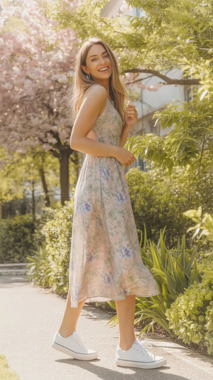 - Pair white sneakers with a flowy sundress for a chic, effortless look.