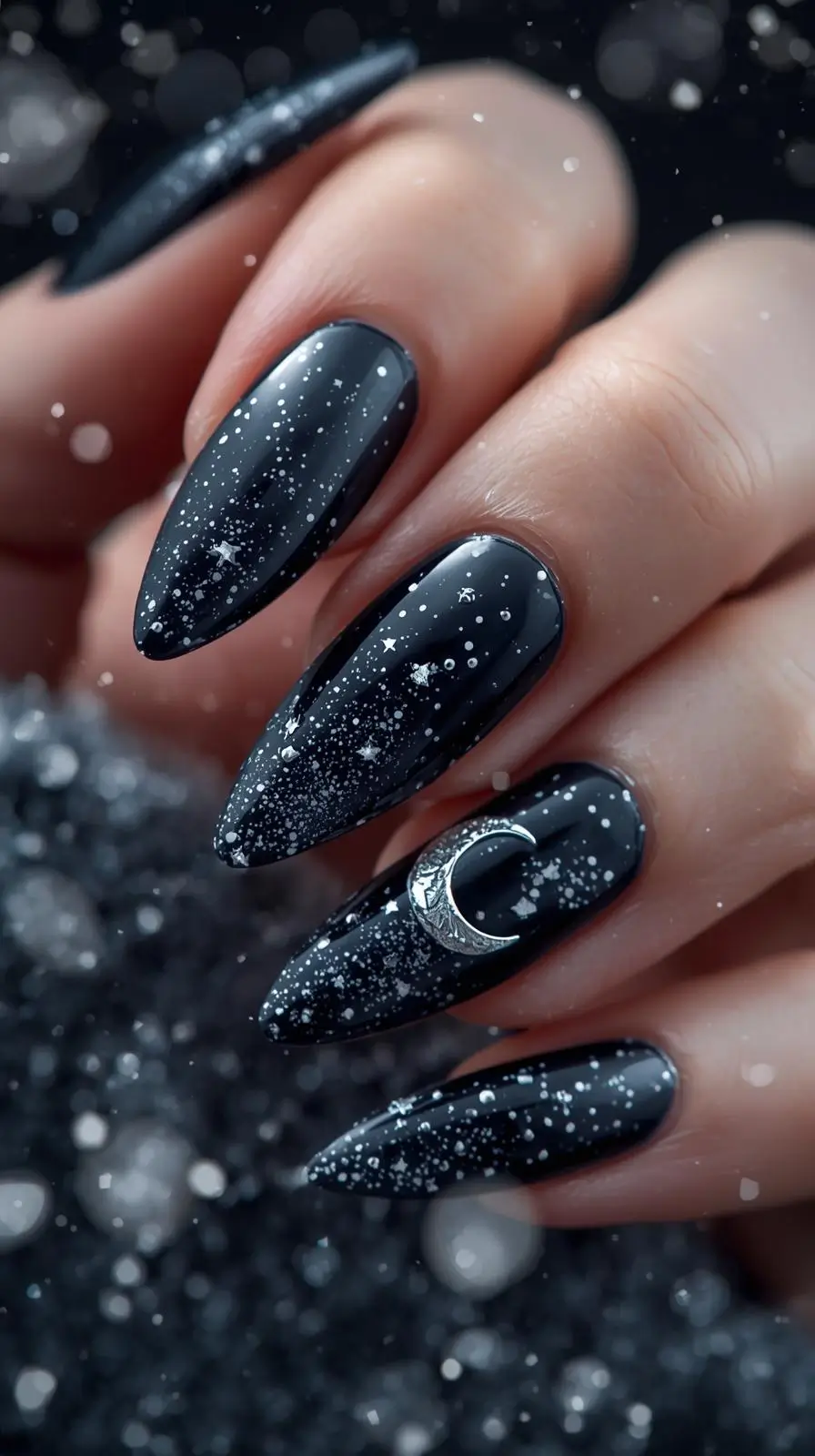 Get ready to shine this holiday season with a sparkling winter night sky nail design. It’s as unique as it is festive. This celestial-inspired nail art is perfect for adding magic to your holiday look.