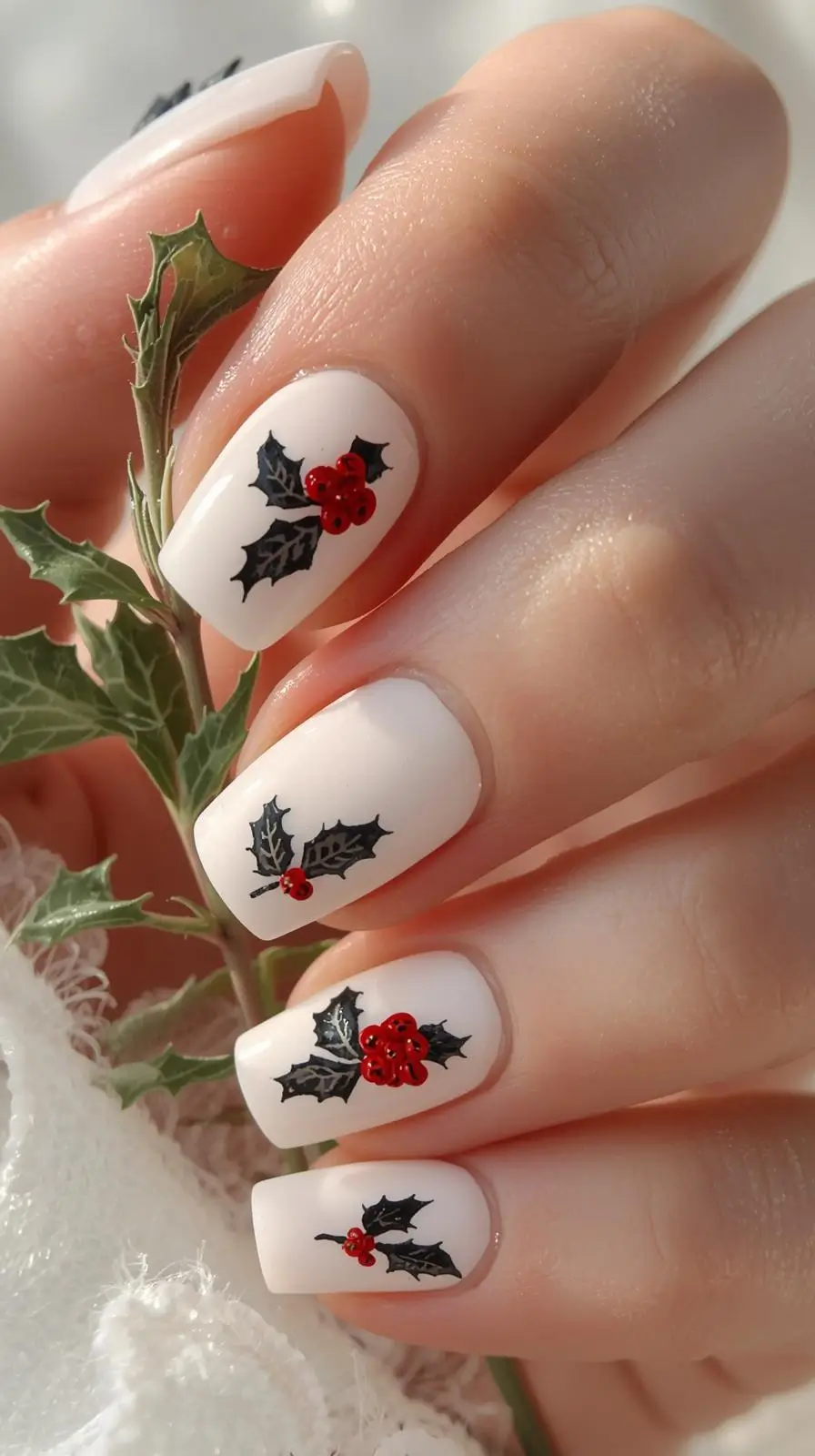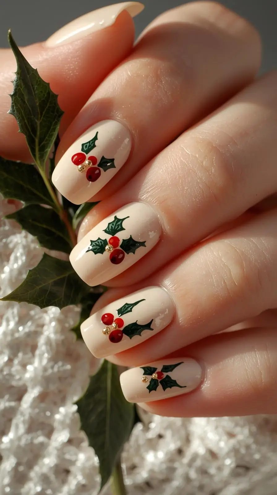 Holly berry accents are a timeless choice for elegant Christmas nails. They add sophistication and festive charm to your holiday look.