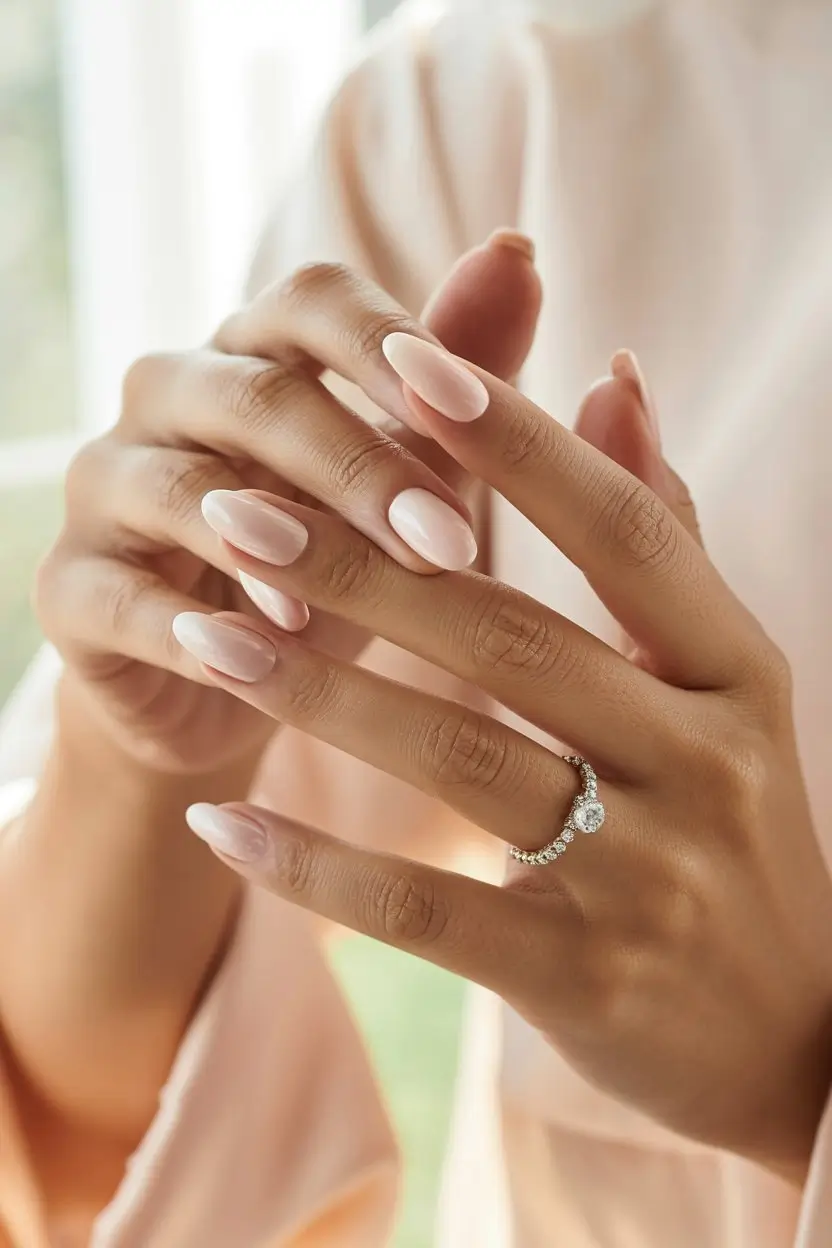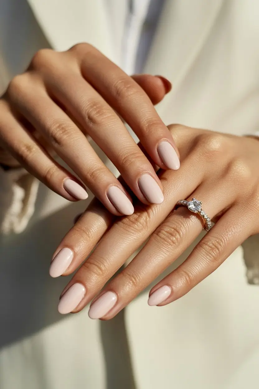 Nude and blush nail shades are perfect for brides-to-be. They offer a versatile and sophisticated look. These shades work well with many wedding themes and styles, making them great for engagement nails.