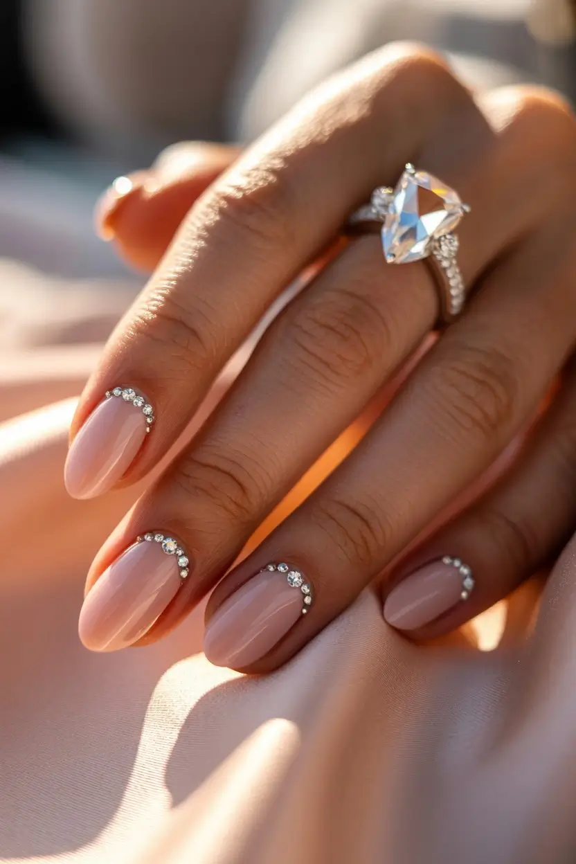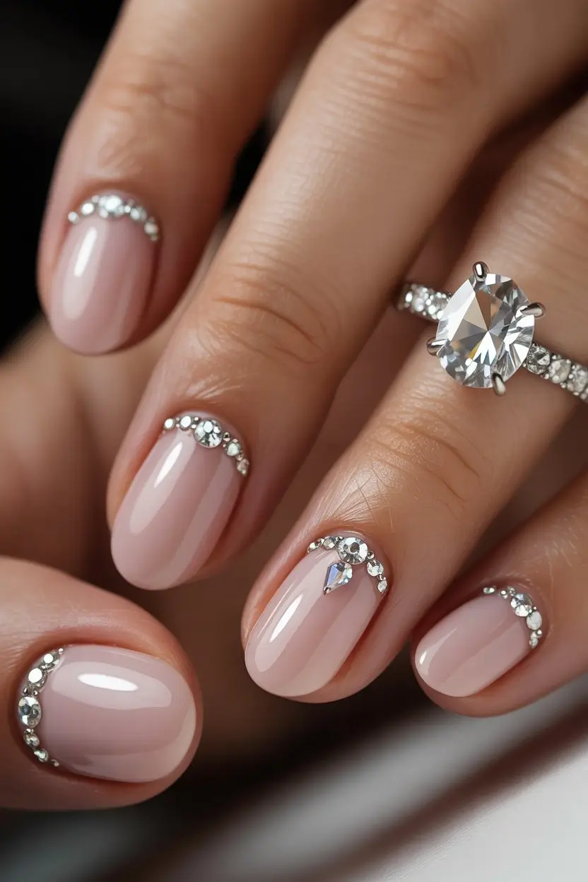 Where you place rhinestones matters a lot. You can use single accent nails or add them along the cuticle line.
