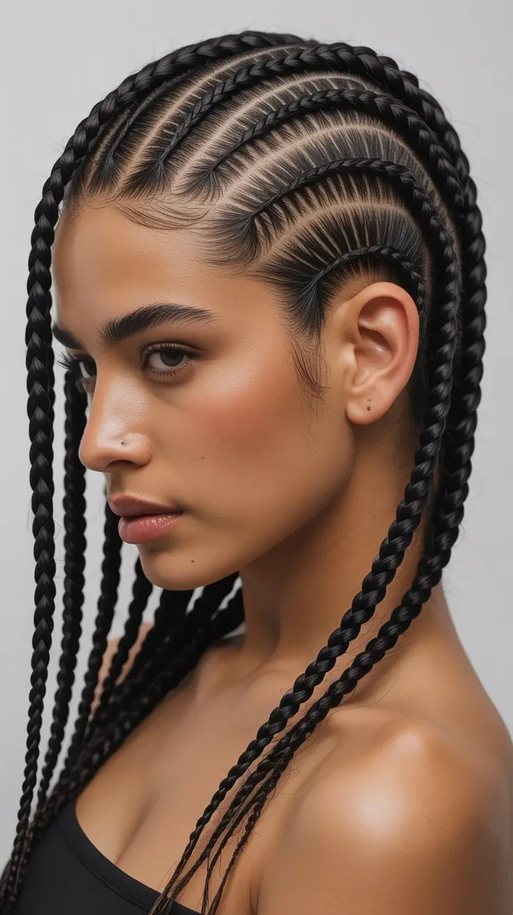 Side-swept cornrows give a fresh twist to classic cornrow styles. They’re perfect for making a bold statement. This design adds elegance and sophistication to any look.