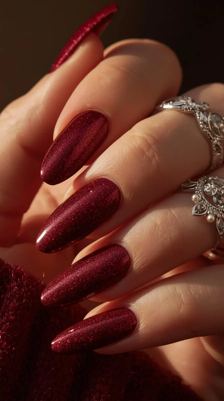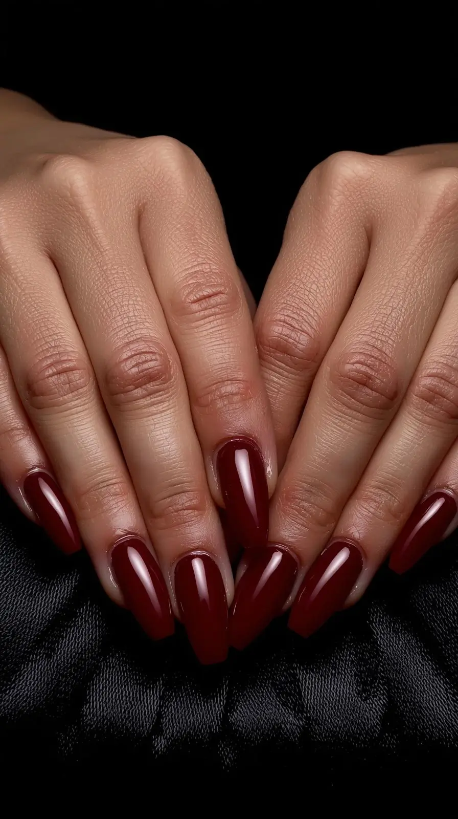 Dark cherry red nails are perfect for trying out new fashion styles. This color is versatile and can make any outfit look better.