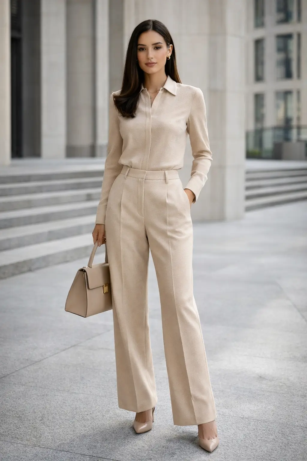 Pairing your pantsuit with a silk blouse adds sophistication. Delicate jewelry, like a dainty necklace or minimalist earrings, can enhance the look without overpowering it.