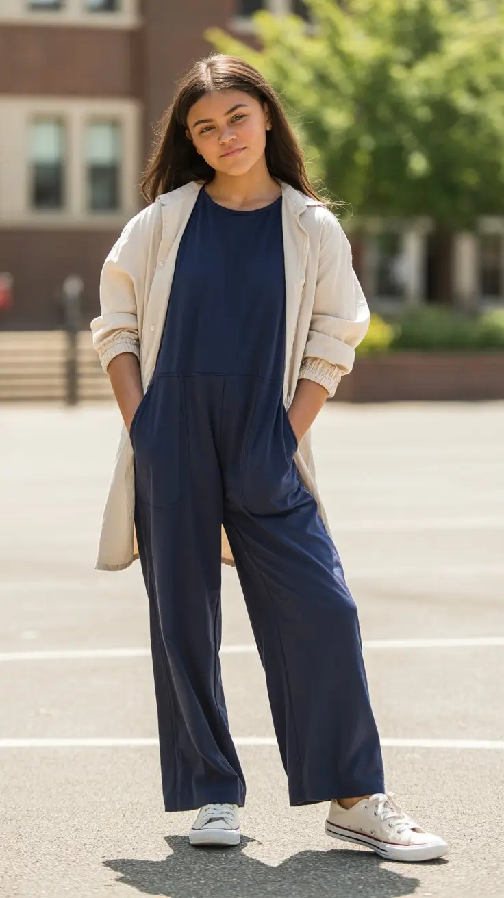 For school, pick jumpsuits that are modest and follow your school’s dress code. Solid colors and subtle patterns are good choices. Jumpsuits with interesting necklines or sleeves can add personality without being too bold.
