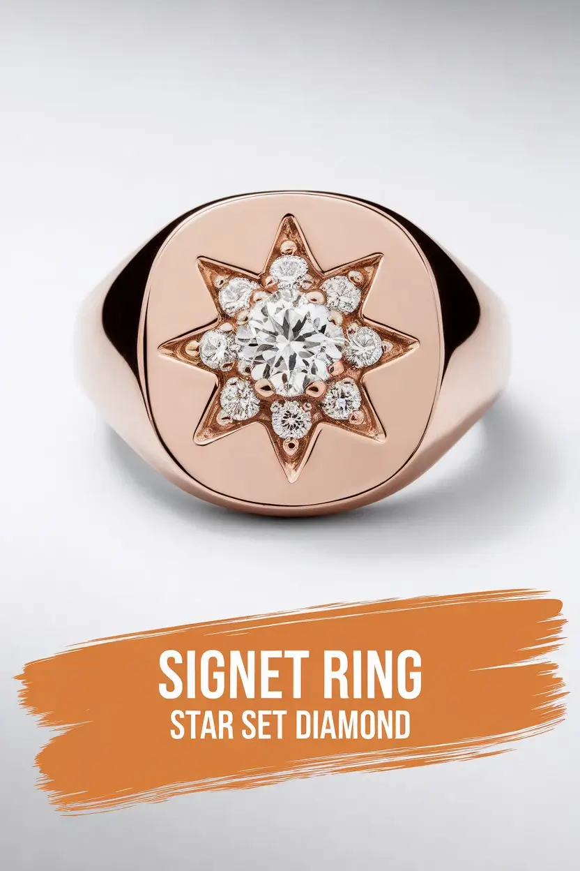 | Star set signet | Yellow gold, silver | Small diamond | Minimal with a twist | Very high | 250 to 3,500 |
