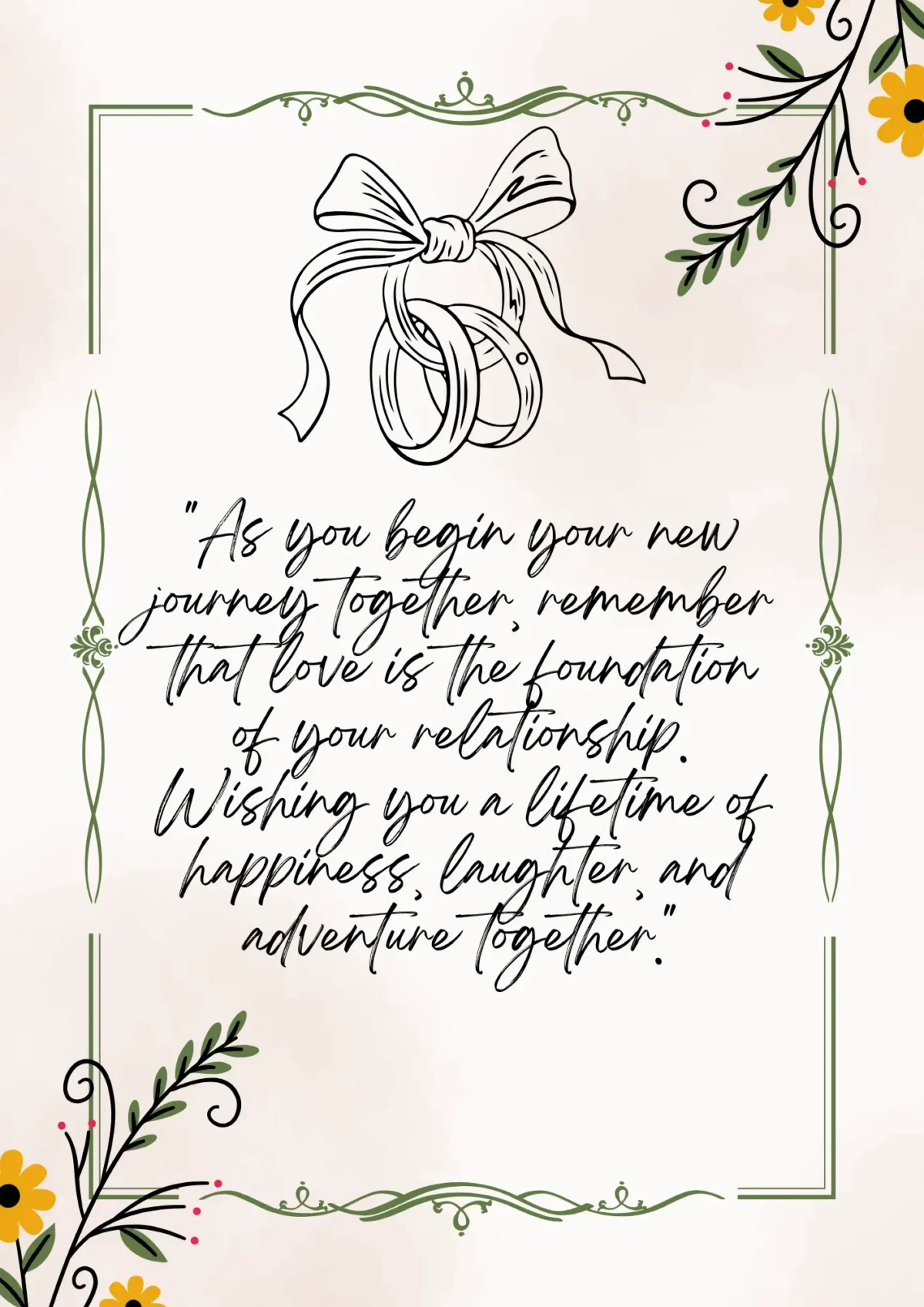 “Wishing you a lifetime of love and happiness, as you begin your new life together under God’s guidance.”