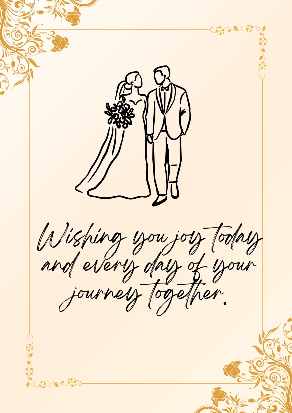 “Dear [Bride’s Name] and [Groom’s Name], I wish you a lifetime of love, happiness, and togetherness. Congratulations on your wedding day.”