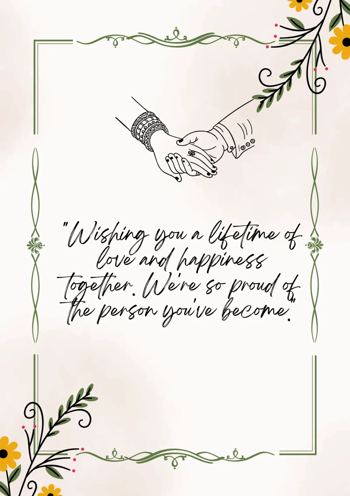 By adding these personal touches, you can craft a wedding card message that’s heartfelt and unique to the couple. The goal is to make your message sincere and reflective of your relationship with them. This way, it becomes a treasured keepsake for years to come.